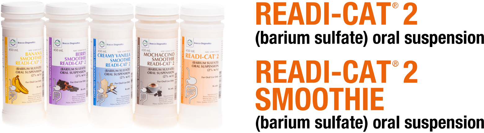READI-CAT® 2 and READI-CAT® 2 SMOOTHIE (barium sulfate) oral suspension are indicated for use in computed tomography (CT) of the abdomen to delineate the gastrointestinal (GI) tract in adult and pediatric patients.